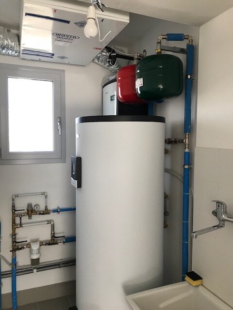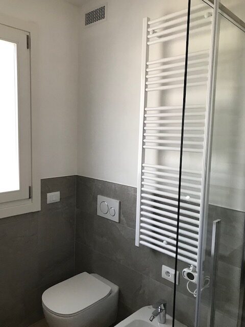 Villetta ad un piano con garage. Particolari interni degli impianti energetici, dei serramenti (con zanzariere) e dei bagni.
